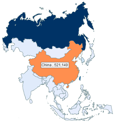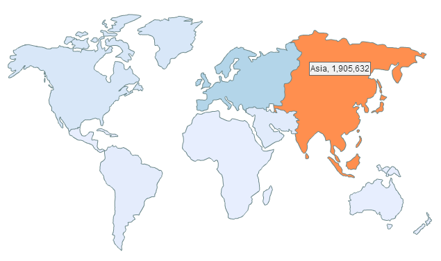 If we look at Dailyroads Voyager via Flurry which tracks all users and app installs regardless of the download source, the marketshare of the different countries is completely different. Flurry reports a total of 2,803,563 unique users with 46,110 active users. If we look at the new users map across all time, we can see 1,905,632 (67.97%) installs from Asia, out of which 521,149 (18.59% of total) installs comes from China.